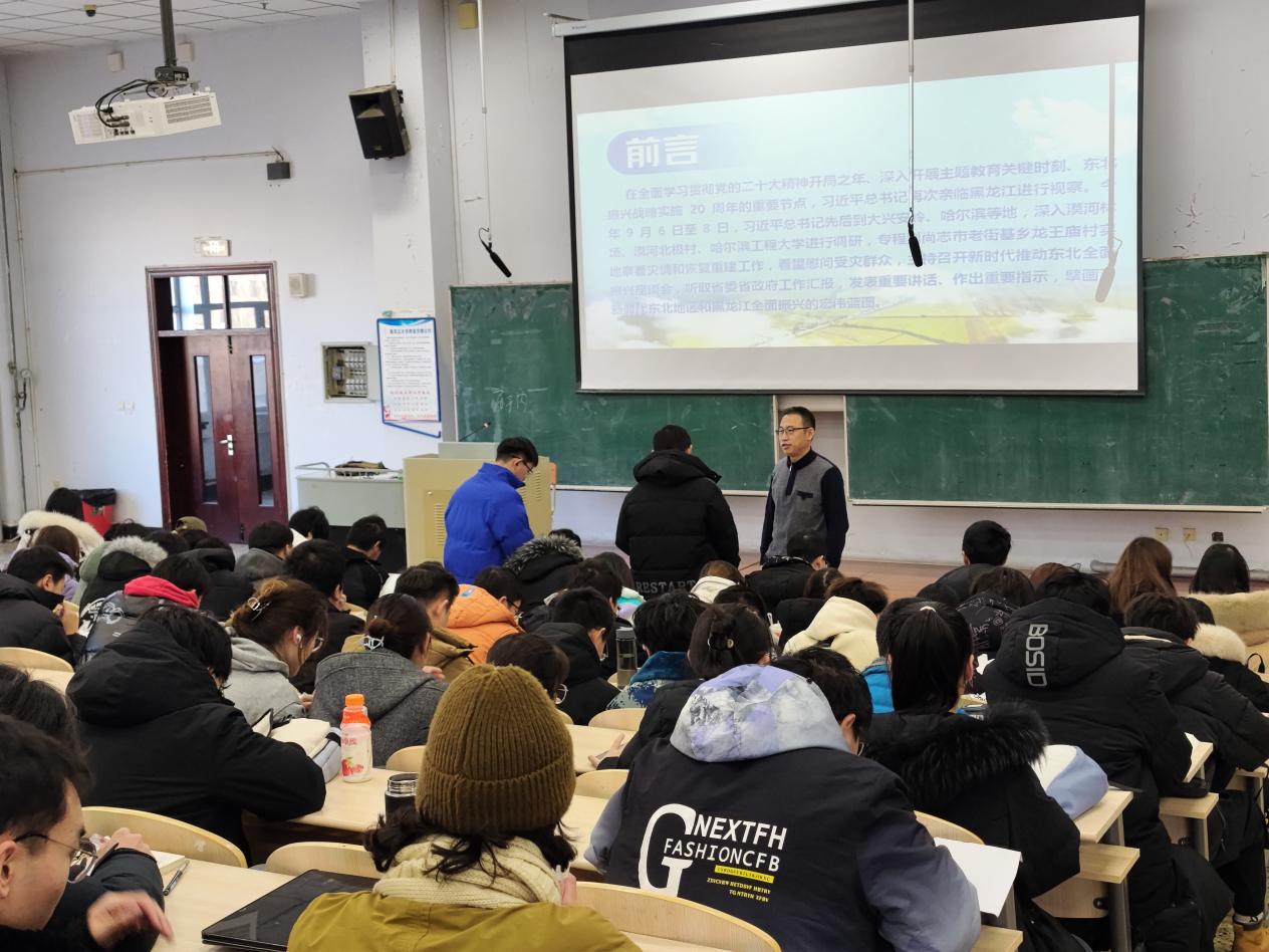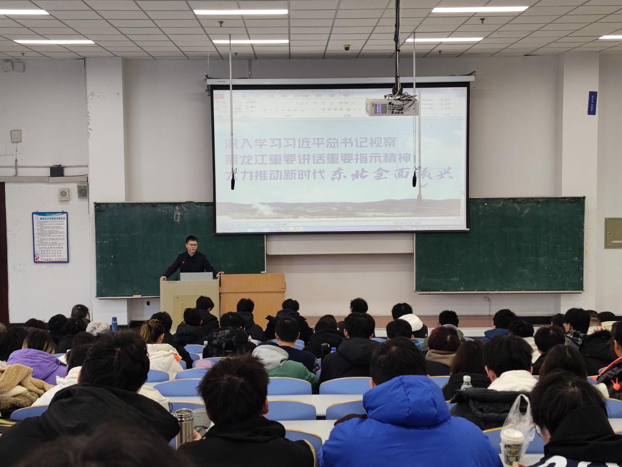 刘洪波带领同学们回顾了东北地区发展历史、现状及未来发展方向,深入解读了习近平总书记历次来到东北地区的重要讲话内容和重要指示精神。刘洪波从深刻认识习近平总书记视察黑龙江的重大里程碑意义、深刻领会习近平总书记重要讲话重要指示的丰富内涵和实践要求、坚决贯彻落实习近平总书记重要讲话重要指示精神等三个方面,重点讲解了如何学习宣传贯彻习近平总书记重要讲话重要指示精神。刘洪波结合MK体育专业特色详细分析土木工程专业及给排水科学与工程专业在维护国家国防安全、粮食安全、生态安全、能源安全、产业安全等“五大安全”中所扮演的角色及重要使命,鼓励同学们认真学习,在毕业后留省就业,为推动新时代东北全面振兴做出应有贡献。