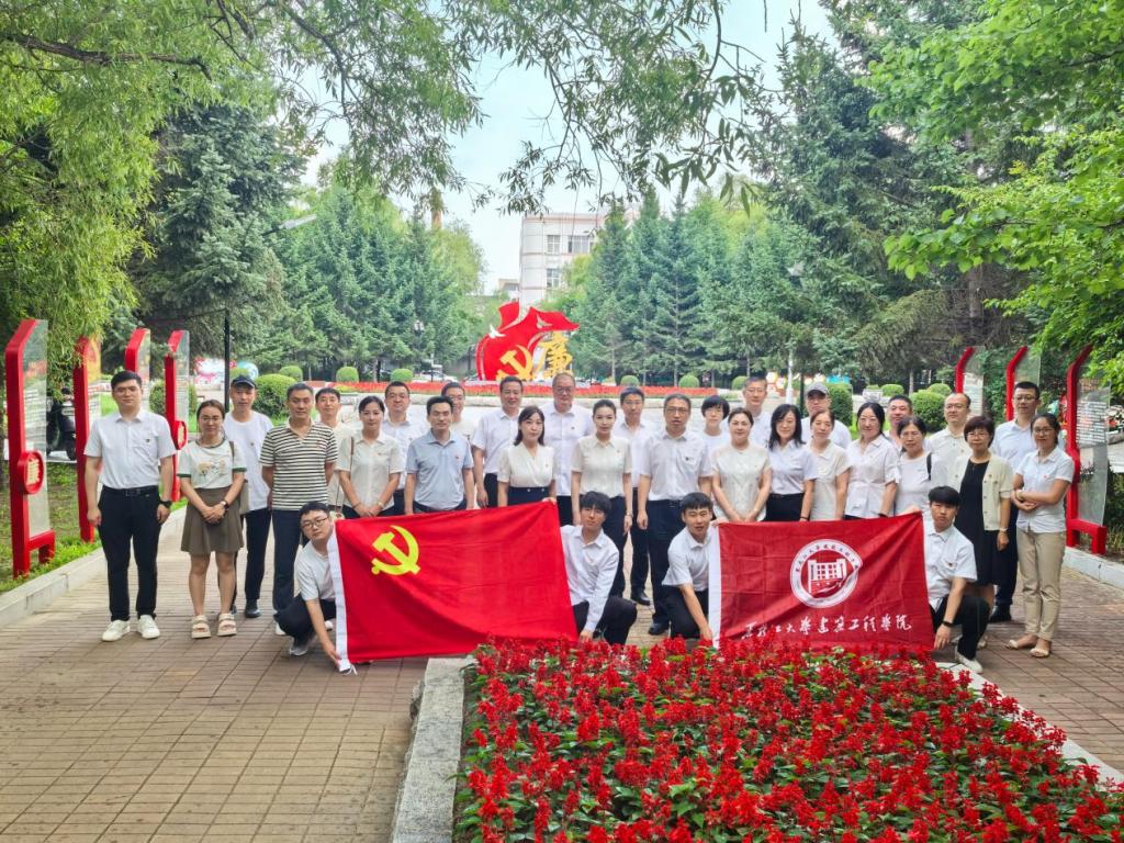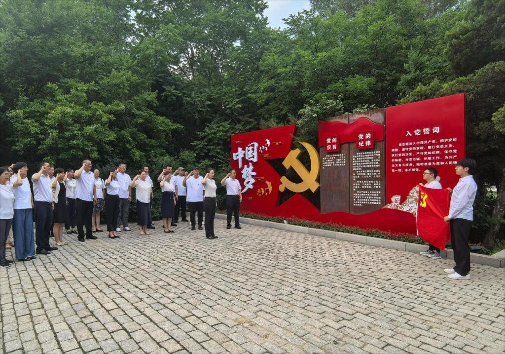 随后,党员师生赴平房区廉政教育公园开展沉浸式情景研学。在廉政广场,全体党员面向鲜红党旗庄严地重温入党誓词。