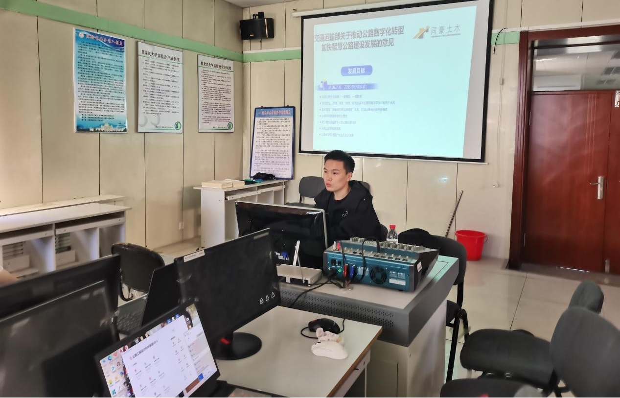 在生产实习过程中,为做好实习和毕业设计的衔接工作,道桥与地下工程系聘请了上海同豪土木工程咨询有限公司的软件工程师为员工详细介绍了公路BIM有限元软件,一方面再次加深数字化的重要性,另一方面间接启动土木工程专业毕业设计工作。