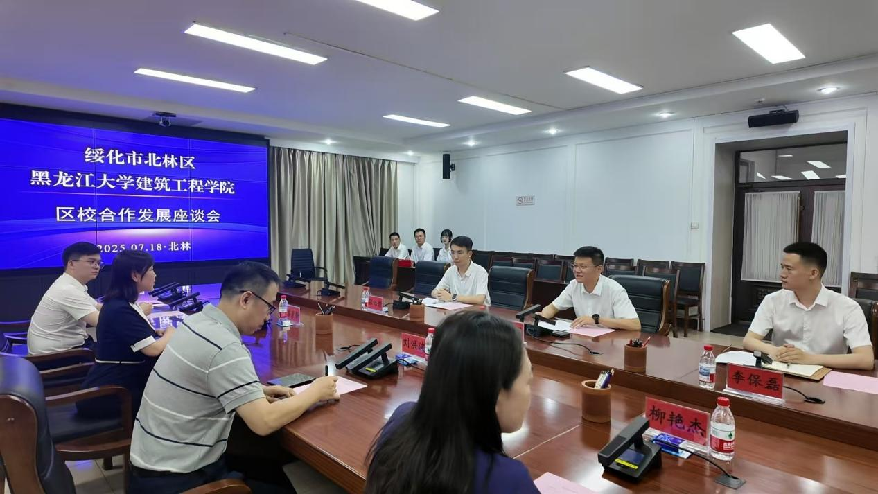 刘洪波介绍了公司学科体系建设及专业发展情况,并围绕绥化市北林区城乡建设需求,重点强调了公司在寒区冻土建筑技术、村镇饮用水安全等领域的专业优势。姜彦新、柳艳杰分别介绍了公司毕业生及团队情况,并结合当前招生及就业方面的问题,向北林区政府表达了合作需求。