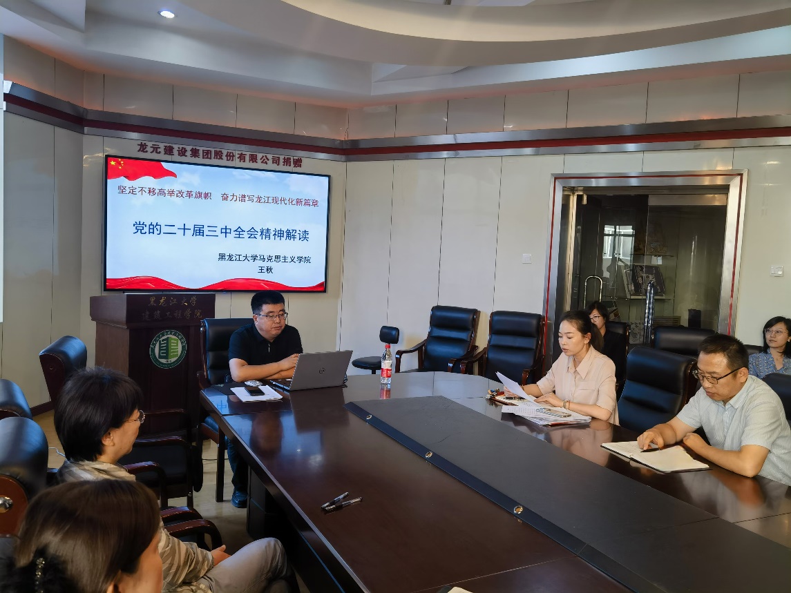 为深入领会党的二十届三中全会精神和省委十三届六次全会精神,切实用全会精神统一思想、凝聚共识、增强斗志,9月11日下午,MK体育邀请马克思主义公司经理、公司宣讲团专家王秋教授在公司一楼会议室开展题为《坚定不移高举改革旗帜奋力谱写龙江现代化新篇章》的宣讲会。公司领导班子成员、党员师生代表参加宣讲会学习,本次宣讲会由公司党总支书记张丽丹主持。