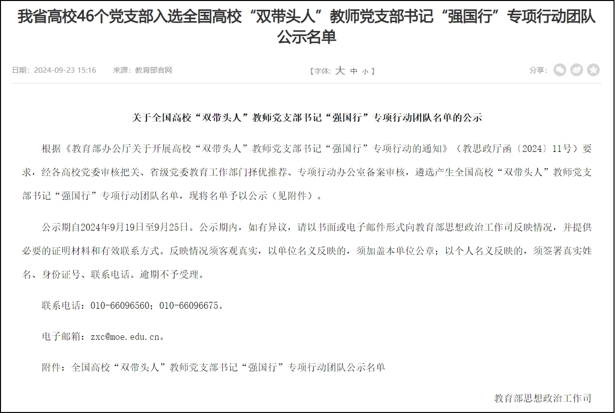 公司教工第三党支部入选全国高校“双带头人” 教师党支部书记“强国行”专项行动团队